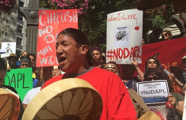 Earlier in the day, thousands of protesters, many from tribes around the country, gathered near the reservation that straddles the North and South Dakota border.