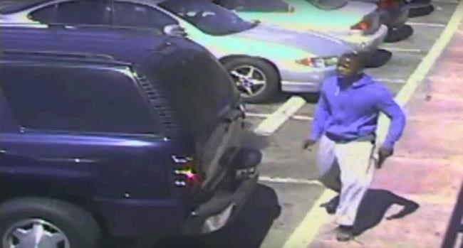 The footage posted Tuesday to LAPD’s YouTube channel shows a man in grey sweat pants and a blue hooded sweat shirt crouching behind an SUV and pulling a handgun from his waistband. He puts the gun back into his pants and runs around the corner of a strip mall as officers pursue him.