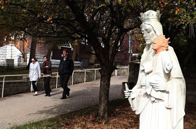 The church’s priest, Gerard Lajeunesse, says it will be months before it can be reattached to the statue, partly due to logistical issues.