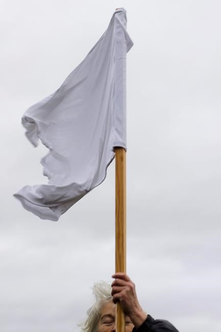 The Civil March for Aleppo set off carrying white flags from Berlin’s former Tempelhof Airport on Monday in cloudy, cold and blustery weather.
