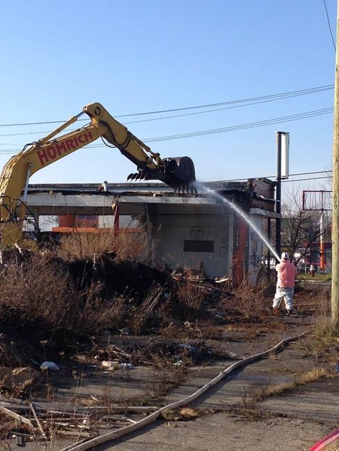 Blows from an excavator methodically destroyed a portion of what had been a 60,000-square-foot building on Cloverdale Avenue in a west side neighbourhood of homes, auto repair shops and other light industrial buildings.