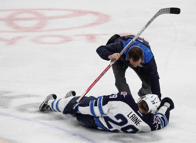 Laine was injured in Saturday’s 4-3 loss in Buffalo. The 18-year-old sniper was looking down at the puck when Buffalo’s Jake McCabe hit him with his right shoulder. McCabe was not penalized for the hit. Laine appeared to hit the back of his head on the ice as he fell and was down for several minutes before being helped to his feet.