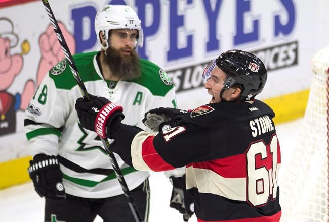 Tied 2-2, Stone scored his team-leading 19th at the six-minute mark of the third as he grabbed the puck behind the net and beat Lehtonen on the wraparound in front of 17,676 at Canadian Tire Centre.