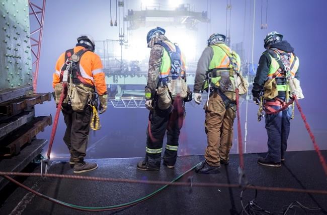 HALIFAX – A roughly 10 metre segment hung in the fog over Halifax Harbour on Sunday to fill the 46th and final gap in the decades-old MacDonald Bridge in time for tens of thousands of cars to cross the bridge Monday morning.