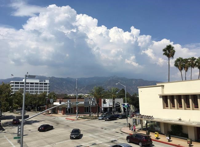 The deluge was the latest from a week of hot and very humid weather as moisture-laden air flowed from east to west across Southern California, hurling lightning bolts and forming massive clouds.