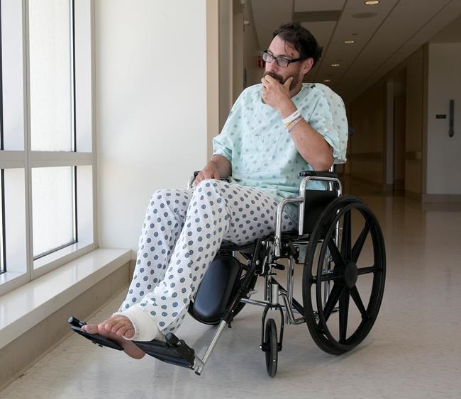 Steinhuber had cuts and bruises from his fall and a number of burns he described as mostly superficial. The hair on one of his arms was singed when he spoke to the AP at the University of California, Davis Hospital Burn Center in Sacramento. He’s struggling to hear through his left ear.