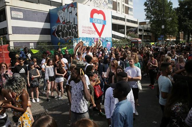 LONDON – Hundreds of thousands of revelers packed the streets of London for the annual Notting Hill Carnival on Monday, pausing their celebrations to remember the victims of the deadly Grenfell Tower fire.