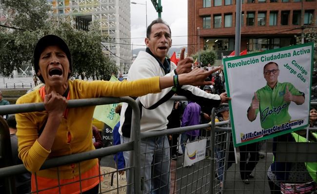 Police took Glas into custody Monday, and he is being held in the capital, Quito. The Supreme Court ordered his detention at prosecutors’ request to prevent any possible escape attempt.