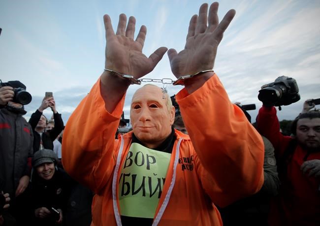MOSCOW – In a challenge to President Vladimir Putin on his 65th birthday, protesters rallied across Russia on Saturday, heeding opposition leader Alexei Navalny’s call to pressure authorities into letting him enter the presidential race.