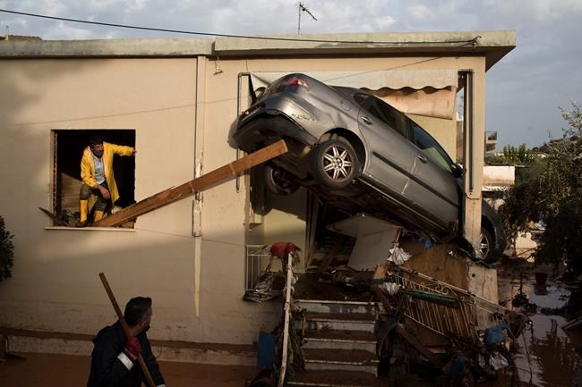 Wednesday’s floods turned roads into raging torrents of mud and debris, flung cars into buildings, swept away walls and inundated a section of a major highway. Nearly 1,000 buildings, mostly homes and small businesses in the modest working-class district of Mandra and nearby Nea Peramos, were damaged.