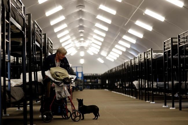 About 20 people made their way to a bunk bed Friday in the tent that will house 350 single men and women. Two other giant tents will open later this month — one for families and one for veterans. The tents will house a total of 700 people.