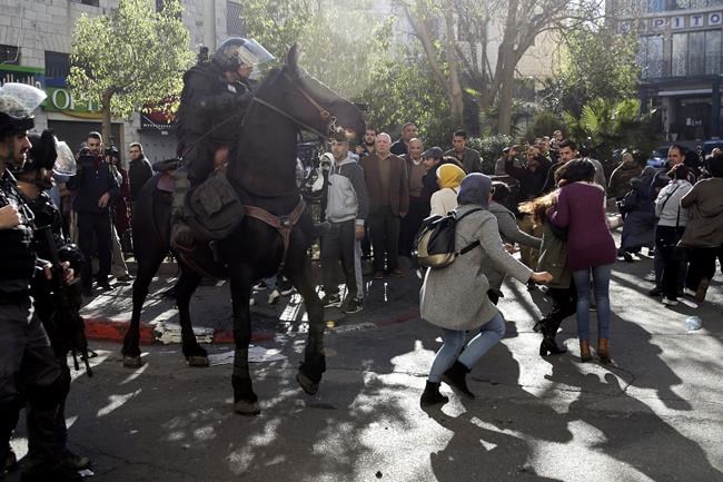 In Jerusalem, police forces — some on horseback — scuffled with protesters near the Old City and arrested 13 people who were involved in what they called an illegal protest. Four policemen were slightly injured.