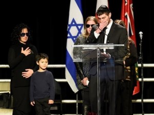 After putting on the purple prosthetic, Ollie celebrated by giving hugs, shaking hands and throwing his arms in the air.