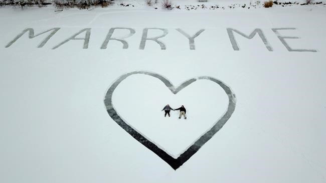 NEVIS, Minn. – An aviation student in northern Minnesota pulled off a sky-high marriage proposal by writing “Marry Me” in the snow, then flying his long-time girlfriend over his handiwork.