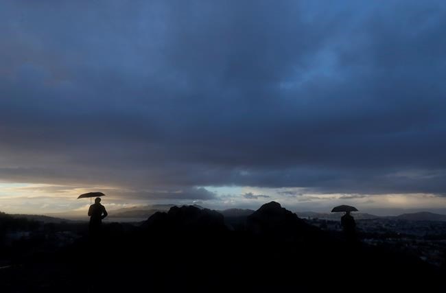 About 300 miles (482 kilometres) south, rain fell in the coastal foothill communities of Santa Barbara County, where thousands of people had been told to flee out of concern that the approaching storm might send huge swathes of fire-scarred slopes rushing down on them.