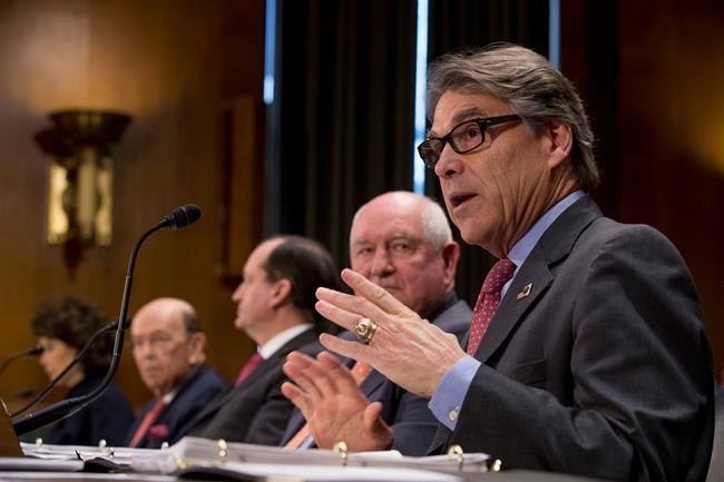 Speaking after a Senate hearing, Perry said he’s keeping his job and made a reference to reports as “fake news.” Perry says he’s energy secretary “until the foreseeable future — happily.”
