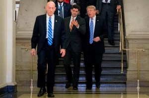 Trump was walking with House Speaker Paul Ryan, who thanked reporters but did not respond to shouted questions.