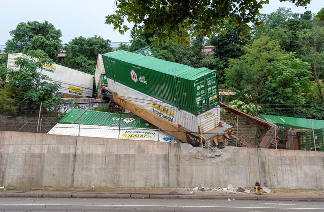Shipping containers from the derailed cars slid down the hillside onto or near the light rail Port Authority tracks, said Adam Brandolph of the Port Authority of Allegheny County. Brandolph says there has been “extensive damage” that likely will take a long time to repair. Light rail service at the station was suspended.