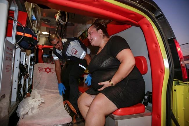 Military spokesman Lt. Col. Jonathan Conricus says Gaza militants have fired about 150 rockets at Israel in the past 24 hours, while Israel has struck some 140 Hamas targets in Gaza.
