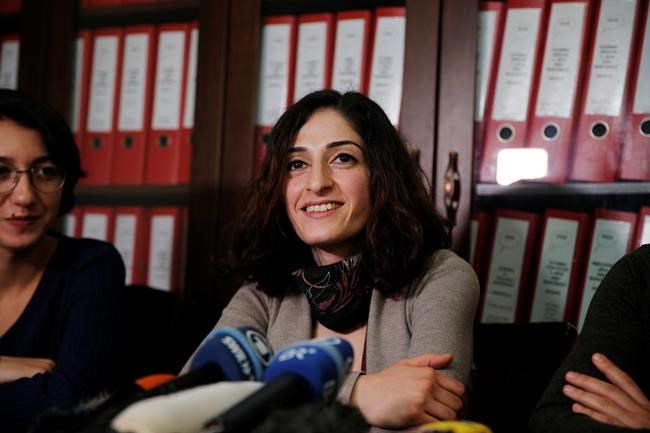 A group that has campaigned for Tolu said that a court lifted conditions imposed on her after her release but that an exit ban on her husband, Suat Corlu, who has faced similar charges in the same proceedings, wasn’t lifted.