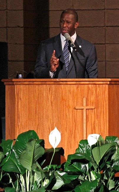 The Democratic candidate for Florida governor, Andrew Gillum, has told an overflow crowd at an African-American church that voter disenfranchisement isn’t just about being blocked from the polling booth.