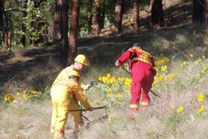Fourteen firefighters contained the fire yesterday and crews are in the mop-up stage this morning.