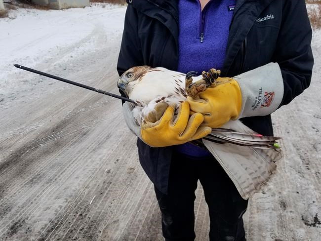 The hawk was first reported on Nov. 30, and it continued to fly with the arrow in its leg. It was finally captured Wednesday but the University of Minnesota’s Raptor Center couldn’t save it.