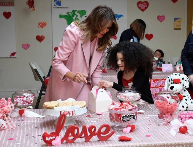BETHESDA, Md. – Melania Trump showed love for her new hometown during a Valentine’s Day arts-and-crafts session with pediatric patients Thursday.