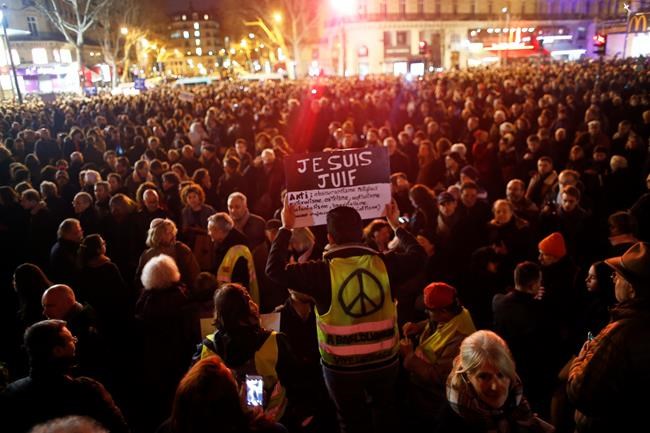 PARIS – Rallies against anti-Semitism attracted crowds of thousands in Paris and other French cities Tuesday following a series of aggressive acts with Jewish targets, including a cemetery where about 80 gravestones were spray-painted with swastikas overnight.