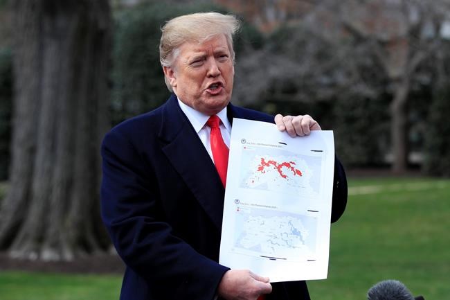 President Donald Trump on Wednesday flashed a colour-coded map to illustrate what he called the imminent demise of IS in its last speck of Syrian territory. At its peak, in 2014-15, it controlled an area the size of Britain across Syria and Iraq and launched a series of extremist attacks around the world.