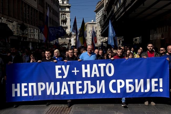 Earlier on Sunday, Serbian far-right supporters burned NATO and EU flags in Belgrade, condemning the 78-day bombing that ended the country’s rule over the territory many here view as their nation’s historic heartland.