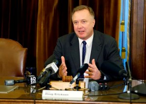 Officials say a deputy and a security guard had to drag Suhor from the meeting.