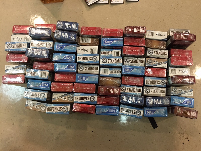 The garbage bag the man was carrying was full of cigarettes stolen from the cigarette machine and 40 bottles of alcohol were found in boxes stashed in a shopping cart outside the pub, police say.