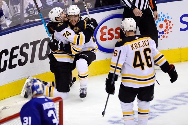 Torey Krug and Jake DeBrusk also scored for Boston, which got 22 saves from Tuukka Rask. David Pastrnak added two assists for the Bruins, who downed the Leafs in seven games in the first round of the 2013 playoffs, and again at the same stage of last spring’s post-season.