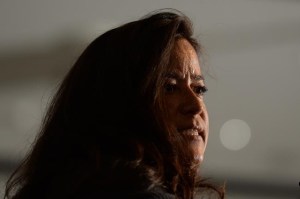 “I had to. He wouldn’t drop the gun and he brought it out of his jacket,” she said. An officer out of view tries to comfort her.