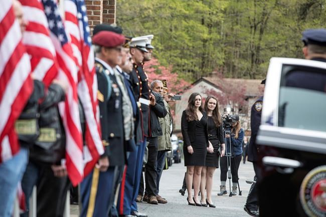 Despite drizzly weather hundreds of veterans, first responders and others showed up to celebrate a life well lived. Officials temporarily closed a nearby highway to accommodate the funeral procession and its police escort. Firefighters hung a giant American flag over the procession’s route, while a police honour guard carried Graham’s casket into the church.