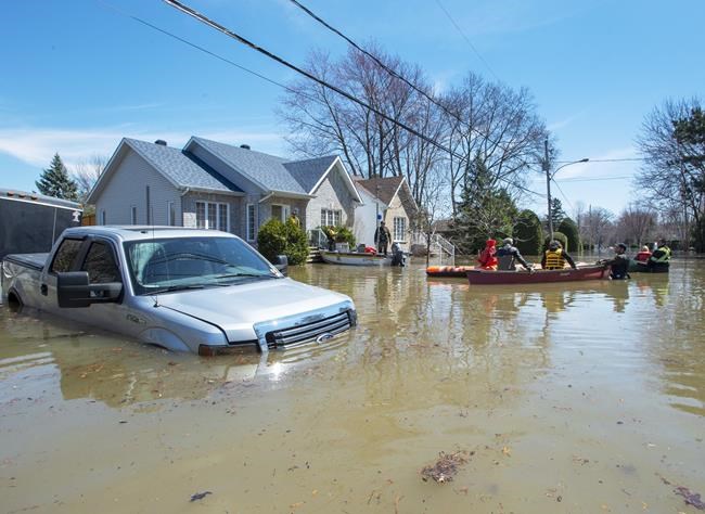 In the town northwest of Montreal, teams of firefighters, Canadian Forces and police used small Zodiac-style boats Tuesday to escort residents, like Pepin, back to their flooded homes. The hardest-hit areas still looked like a disaster zone. Cars sat submerged almost to their rooftops, and water reached nearly to the living room windows of some homes.