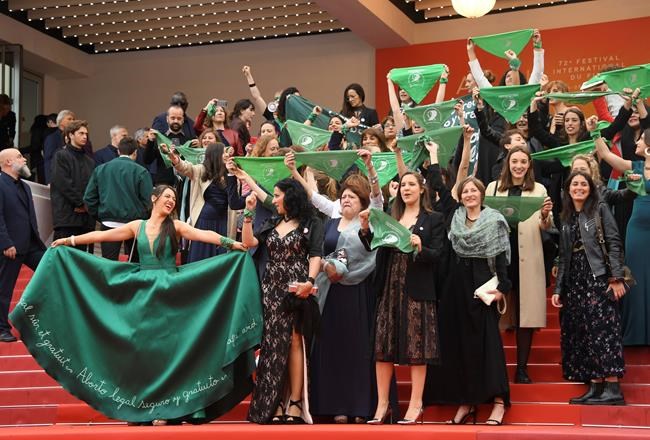 Women, including the filmmakers and activists seen in the film, waved green handkerchiefs and carried a large banner while walking the Cannes carpet at the premiere of Argentine director Juan Solanas’ “Let It Be Law.” The documentary depicts Argentina’s battle to legalize abortion.
