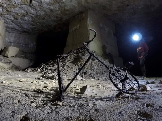 The cavern, inaccessible to the public but visited by an Associated Press team, is one of the best-preserved makeshift bomb-shelters in Caen, a 1944 time-capsule filled with traces of the civilians who hid there and their ordeals. There are abandoned shoes, a doll’s head, broken plates, a rusty key, cutlery, a rosary, and other personal objects that spark the imagination. Abandoned vials show where a first-aid station used to be. The long-rotten remains of straw beds amid the puddles and gooey mud eloquently speak of the extreme discomfort the refugees endured.