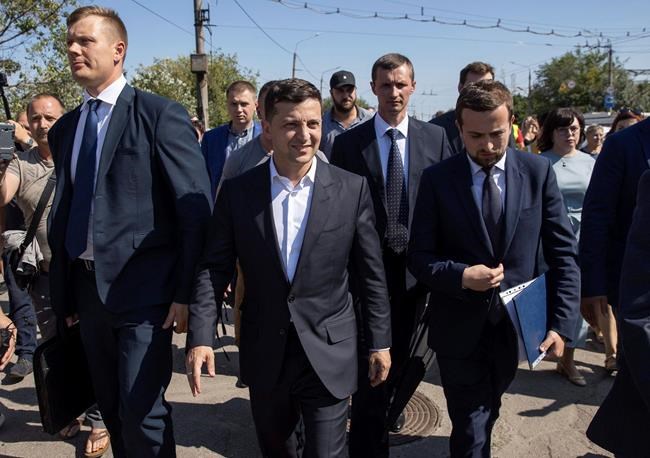 Zelenskiy said in televised comments Friday that Ukraine could release journalist Kirill Vyshinskiy, who has been in jail for a year on treason charges, if Russia releases film director Oleg Sentsov from a Russian prison colony. Sentsov is serving 20 years in a Russian prison for allegedly plotting acts of terrorism.