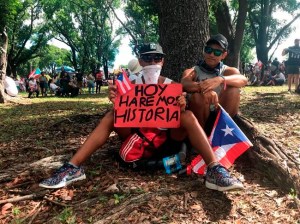 The crowd surged along the American Expressway Monday despite the punishing heat — toddlers, teenagers, professionals and the elderly, all dripping in sweat and smiling as they waved Puerto Rico flags large and small and hoisted signs.