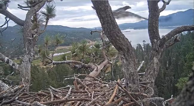 The eagle’s mother laid two eggs in the nest near Big Bear Lake in March and two eaglets hatched in April.