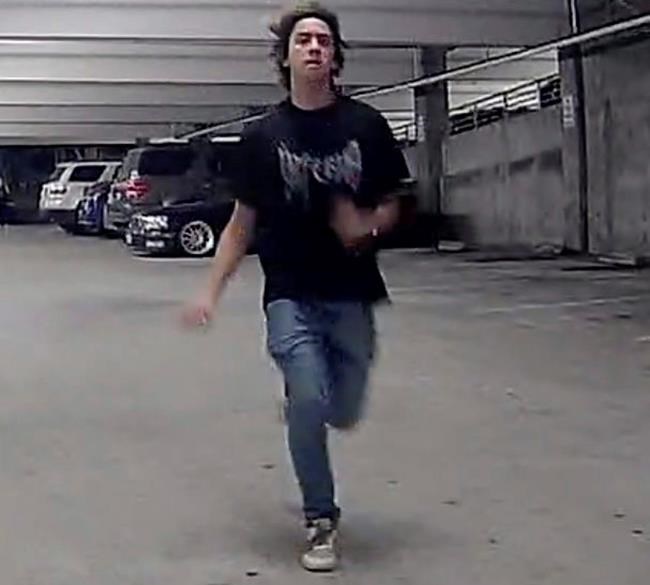 The 5-foot-tall (1.5-meter) robot, described by police as an “R2D2” figure, was guarding a parking garage when it was pushed over Aug. 3. K5’s photos show a young man in a black T-shirt and jeans running up moments before the attack.