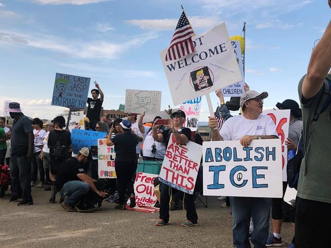 Near downtown Albuquerque, a few hundred Democrats are holding their own rally. Some elected leaders have spoken, including congresswoman Deb Haaland.