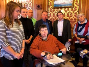 At one point, he leaned over the railing to see a woman who shouted up that she had not yet received the government subsidies she needs to pay her utility bills and he promised to help.
