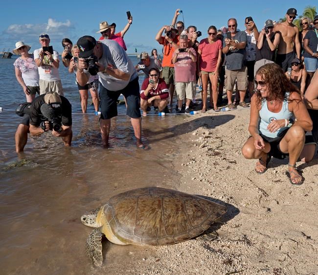 The 150-pound (68-kilogram) female, dubbed “Splinter,” returned to the Atlantic Ocean on Friday at Higgs Beach in Key West.