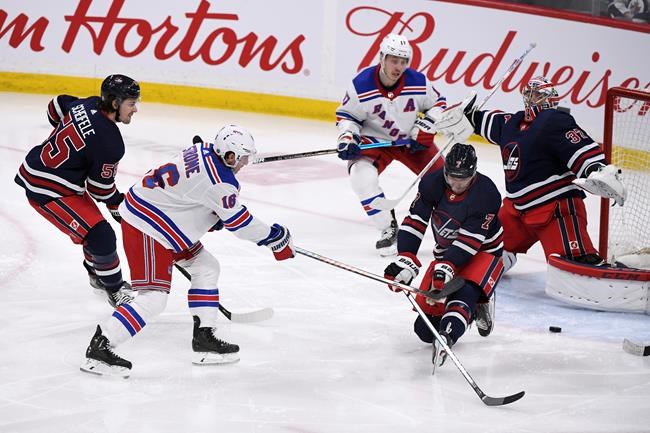 At 8:12 of the first, Shesterkin was crashed into by Andrew Copp after the Jets forward was pushed by Rangers defenceman Tony DeAngelo. The 24-year-old goalie looked shaken up and DeAngelo was penalized for interference.
