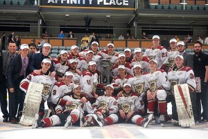 Keelan Williams stopped Lucas Brown to clinch the win on the Golden Hawks’ last opportunity; Williams stopped all five shooters he faced, and made 32 saves in regulation time and overtime.