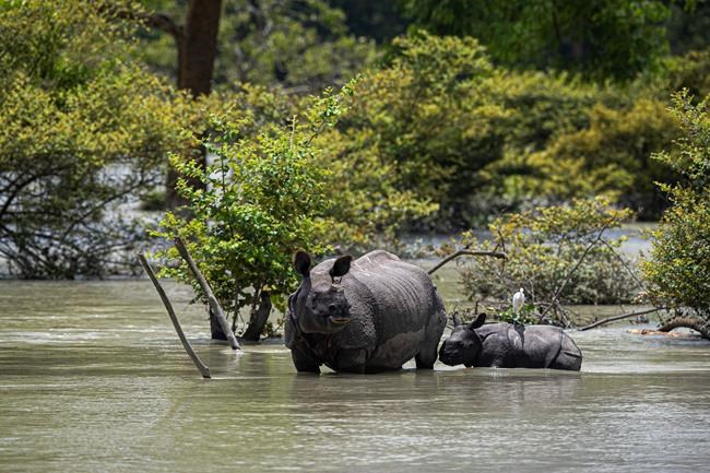 The floods also inundated most of India’s Kaziranga National Park, home to an estimated 2,500 rare one-horned rhinos, authorities said.