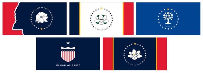 The five final designs will be manufactured. Commissioners hold their next meeting Aug. 25, and those flags will be hoisted outside the Old Capitol in downtown Jackson.